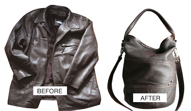 This morning I started with an XL Men's winter jacket. The leather was in good shape, but the pockets where shredded & the style was a little 1996. With a little work I was able to give it a whole new life.